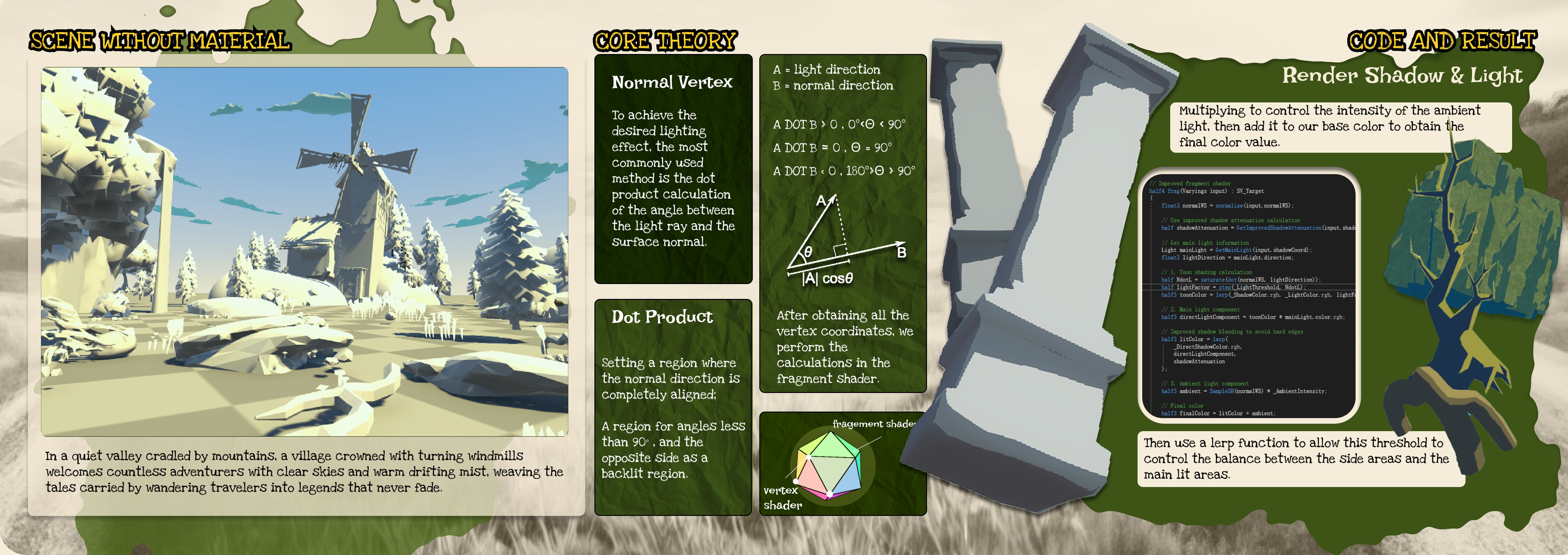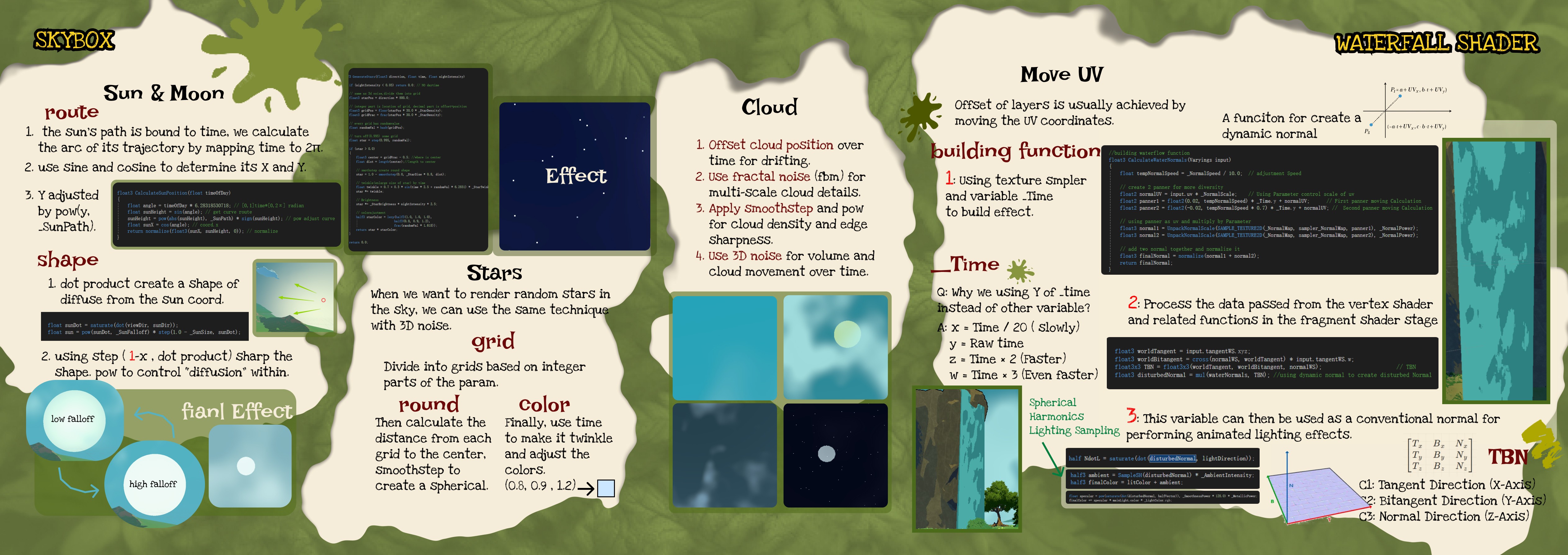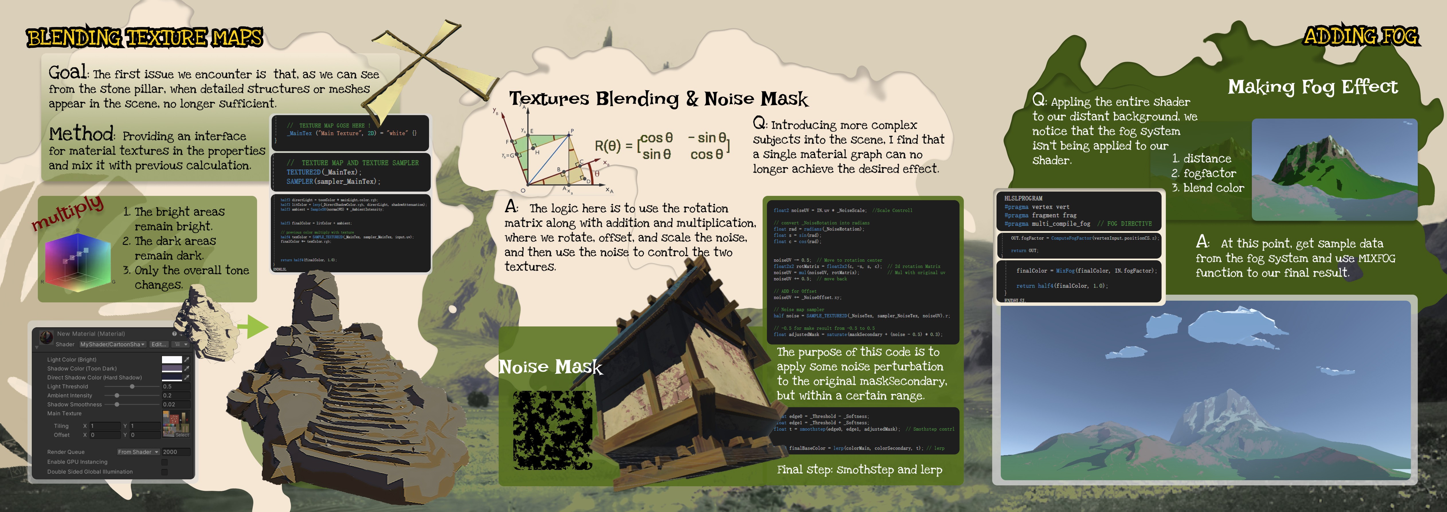 The project focuses on creating a harmonious environment using Unity, with a particular emphasis on shader development to enhance visual effects and immersion. The goal is to craft a world that feels both grounded in nature and fantasy, blending concept within novel story work with stylized elements through animation-style shaders.